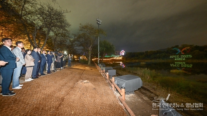 경상북도와 경주시는 15일 저녁, 보문관광단지 육부촌과 호반 광장 일원에서 이철우 도지사, 주낙영 경주시장 등 주요 내빈과 시민 100여 명이 참석한 가운데, APEC 보문단지 야간경관 개선사업 '빛의 향연' 시연회를 개최했다.