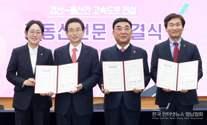 이날 체결식에는 이철우 경상북도지사와 김두겸 울산광역시장, 조현일 경산시장, 조지연 국회의원, 지역 기업인 대표 등 100여 명이 참석한 가운데 지역의 오랜 숙원사업인 ‘경산~울산 고속도로’ 건설의 국가 계획 반영 등 결의를 다졌다.