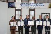 한국인터넷뉴스영남협회 김종설 기자 | 협약식 장면. 사진제공/경상북도 경상북도는 9일 경상북도문화관광공사에서 아시아태평양관광협회(Pacific Asia Travel Association, 이하 PATA), 경주시, 포항시, 경상북도문화관광공사와 함께 2026년 PATA 연차총회의 성공적 개최를 위한 업무협약을 체결했다. PATA 연차총회는 아시아·태평양 지역 정부, 지자체, 관광업계가 참여하는 대표적인 국제 관광 행사로, 내년 연차총회는 5월 11일부터 5월 13일까지 3일간 포항 라한호텔(1일차), 경주 HICO(2~3일차)에서 열린다. 이날 협약식에는 누어 아흐마드 하미드(Mr. Noor Ahmad Hamid) PATA CEO, 김병곤 경상북도 문화관광체육국장, 김남일 경상북도문화관광공사 사장, 경주시 및 포항시 관계자 등이 참석해 내년 PATA 연차총회 준비를 위한 협력 방향과 경북 관광 활성화 방안 등을 논의했다. 5개 기관은 이번 협약을 통해 ▴2026년 PATA 연차총회 개최를 위한 기반시설과 프로그램 제공 등 행·재정 지원 ▴경주·포항 관광 활성화를 위한 국제 홍보 등에 긴밀히 협력하기로 했다. 협약식에 이어 행사 준비 상황 점검을 위해 9일부터