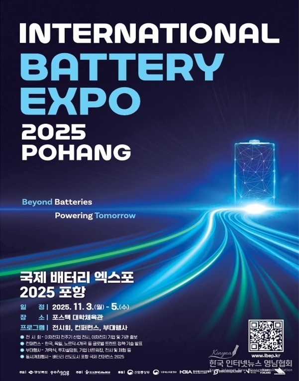 경상북도는 11월 3일부터 5일까지 3일간 포스텍 대학체육관에서 글로벌 배터리 산업의 최신 동향을 한눈에 볼 수 있는 ‘국제 배터리 엑스포 2025 포항’를 개최한다.