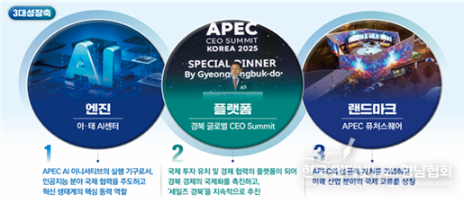 경북도는 그동안 2025 에이펙(APEC) 정상회의 성공개최를 위해 도정의 모든 역량을 집중하는 한편, 이와 동시에 경북연구원, 관련분야 전문가들과 함께 포스트 에이펙(APEC) 사업을 기획하고 핵심사업의 연구용역을 진행해 왔다.