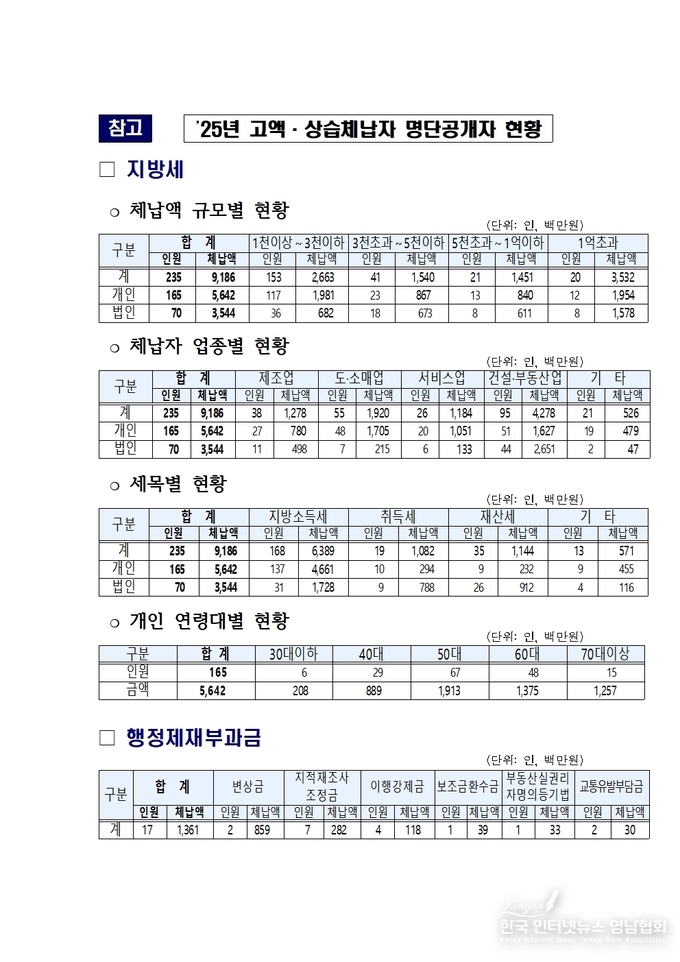 ※ 붙임 : 2025년 대구시 고액·상습체납자 명단공개자 현황(별첨)