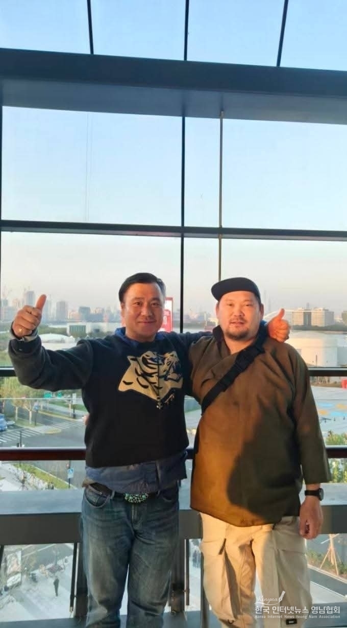 칠곡문화예술위원회 서세승 위원장과 몽골 블루선 현대미술센터 솔롱고 바트사이한 대표.