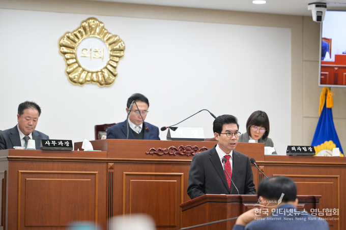 김광열 영덕군수가 영덕군의회 제318회 2차 정례회에서 시정연설을 하고 있다.사진제공/영덕군