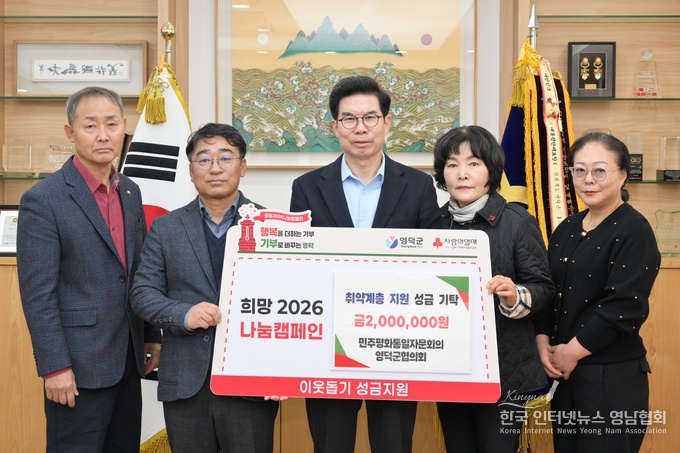 민주평화통일자문회의 영덕군협의회(협의회장 신명종, 이하‘영덕군협의회’)는 1월 6일(화) 영덕군수실을 방문해‘희망 2026 나눔캠페인’의 일환으로 취약계층 지원 성금 200만원을 기탁했다.