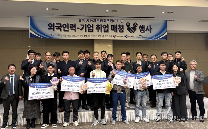경북도는 16일 대구 그랜드호텔에서 자동차부품제조원(E7-3) 비자를 통해 입국하는 외국인 인력과 도내 자동차 부품 기업을 직접 연결하는 취업 매칭 행사를 진행했다.