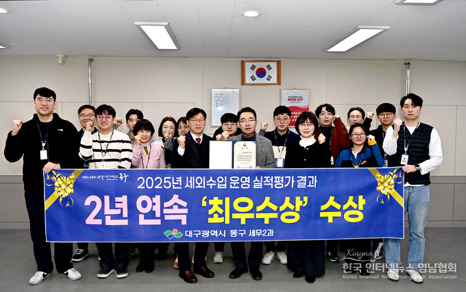 대구 동구청(구청장 윤석준)이 행정안전부 주관 2025년 지방세외수입 운영실적 분석·진단평가에서 2년 연속 ‘최우수상’을 수상하였다.