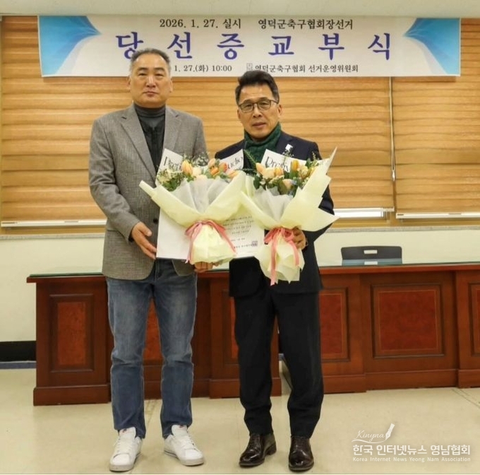 영덕군 축구가 또 한 번의 연속성과 신뢰 위에 서게 됐다. 지난 1월 27일, 영덕군축구협회 회장 선거에서 제26대 회장이 무투표로 당선되며 새로운 임기가 시작됐다. 이날 열린 당선증 교부식은 화려함보다 담담함 속에서, 오랜 시간 지역 축구를 지켜온 이들의 책임감과 각오를 고스란히 담아냈다.