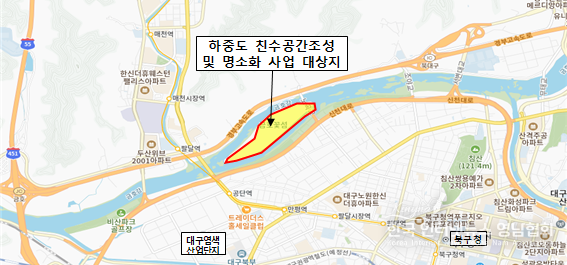 대구광역시는 금호강 르네상스 5대 거점 중 하나인 ‘하중도 친수공간 조성 및 명소화 사업’이 국비 지원사업으로 최종 확정됨에 따라 금호강 르네상스 사업 추진에 탄력을 받게 됐다.