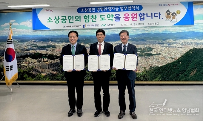 대구신보와 달서구청, iM뱅크는 2월 13일 달서구청 상황실에서 ‘소상공인 경영안정자금 업무협약’을 체결했다. 협약에 따라 달서구청과 iM뱅크가 각 4억원씩 총 8억원을 공동 출연하고 대구신보는 출연금의 12배인 96억원 규모의 특례보증을 시행한다.