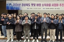 한국인터넷뉴스영남협회 김종설 기자 | 2026경상북도 햇빛바람 소득마을 사업화 추진 전략회의 기념 장면. 사진제공/경상북도 경상북도는 2월 25일, 동부청사 대강당에서 도내 에너지사업 관련 시군 관계자 등 50여명이 참석한 가운데‘에너지 정책 및 지원사업 간담회’를 개최했다. 이번 간담회는 에너지 절약 및 복지 사업의 효율적인 추진과 경북형 미래 수익 모델인‘햇빛소득마을’과‘초거대 영농형 태양광’사업의 실행력을 높이기 위해 마련됐다. ◈ 마을주민이 주인 되는‘햇빛소득마을’조성 경상북도는 행정안전부의 햇빛소득마을 추진단 출범에 발맞춰, 마을 공동체가 주도하는 마을 내 공용시설과 저수지, 유휴지 등에 1,000kW 이하의 태양광발전소를 설치·운영하는 사업 추진한다. 이 사업은 마을 공동체 모델로, 발전 수익을 공동 활용하는 방식으로 운영될 예정이다. 아울러, 경북도는 햇빛소득마을 조성 사업대상지 발굴을 위해 22개 시군을 대상으로 사전 수요조사를 진행중이며, 이를 토대로 정부 공모사업에 대응해 나갈 계획이다. ◈ 산업단지 RE100 기업과 상생하는‘영농형 태양광사업’추진 또한, 경상북도는 포항, 경주, 안동, 구미, 김천, 영주, 경산 등 7개 시 소재의 국가