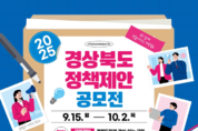 한국인터넷뉴스영남협회 김종설 기자 | 포스터. 이미지제공/경상북도 경상북도는 9월 15일부터 10월 2일까지 다양하고 창의적인 아이디어를 발굴해 도정 발전과 제도 개선에 반영하기 위해 ‘2025년 경상북도 정책 제안 공모전’을 개최한다. 이번 공모전에는 거주 지역 관계없이 경북도정에 관심 있는 국민이면 누구나 참여할 수 있으며 일자리와 경제, 과학과 산업, 에너지와 환경, 보건과 복지, 농축산과 수산업, 전통문화와 예술, 도정 혁신 등 전 분야에 걸쳐 도정 발전을 위한 정책 아이디어를 자유롭게 응모할 수 있다. 공모전에 참가하고자 하는 국민 또는 경북도 및 시군 공무원은 국민신문고(국민생각함–경상북도 기관홈)에 의견을 제출하거나, 전자 우편, 일반 우편 또는 방문 접수 중 한 가지 방법으로 제출하면 된다. 제출된 제안은 실무 부서와 제안심사위원회 심사를 거쳐 12월 중 경상북도 누리집에 선정한 제안을 올리고, 우수한 제안은 도지사 표창과 최대 800만 원의 상금이 수여된다. 박성수 경북도 안전행정실장은 “이번 공모전을 통해 도민이 체감할 수 있는 다양한 아이디어가 도정에 반영될 수 있도록 적극 노력하겠다”며 “경북도정 발전을 위해 많은 분의 관심과 참여를 바