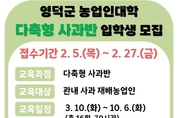 한국인터넷뉴스영남협회 김종설 기자 | 홍보물. 이미지제공/영덕군 영덕군은 변화하는 농업 환경에 대응하고 사과 재배 기술의 전문화를 도모하기 위해 이달 5일부터 27일까지 ‘2026년 영덕군 농업인대학 다축형 사과반’ 교육생을 모집한다. 이번 교육은 현장 경험이 풍부한 강사진들을 중심으로 실제 영농 현장에서 활용할 수 있는 사례를 중심으로 이뤄져 교육생들의 이해와 역량을 높일 수 있도록 체계적으로 구성됐다. 신청은 27일까지 신청서 1부와 농업경영체등록증 1부를 가지고 농업기술센터 농업기술과 지도육성팀을 방문하거나 팩스(☎054-730-6489)로 접수하면 된다. 교육 일정은 다음 달 10일에 시작해 10월 6일까지 총 16회에 걸쳐 70시간 동안 이뤄지며, 전체 일정의 75% 이상 수강하면 수료로 인정된다. 자세한 사항은 영덕군농업기술센터 홈페이지에서 확인할 수 있다. 황대식 농업기술센터소장은 “이번 과정은 기존의 농업인대학보다 심화된 교육과정으로, 지역 농업인들의 경쟁력을 강화하는 데 큰 도움이 될 것으로 기대한다”라고 전했다.