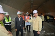 한국인터넷뉴스영남협회 김종설 기자 | 김광열 영덕군수가 도로 공사 현장을 찾아 관계자들을 격려하고 있다.사진제공/영덕군 김광열 영덕군수는 지난 17일 지역 교통망 확충에 큰 역할을 할 포항-영덕 고속도로 공사, 강구대교 건설공사, 국도 34호선 안동-영덕 도로 개량 사업 현장을 차례로 방문해 공사 진행 상황을 점검하고 관계자들을 격려했다. 현재 포항~영덕 고속도로는 공정률 97%로, 오는 11월 개통을 목표로 막바지 공사에 속도를 내고 있으며, 개통 시에는 국도 7호선의 정체 해소와 함께 운행거리 6km(37→31km), 주행시간 20분(39→19분)이 단축돼 관광객 유치와 물류비 절감 등 지역 산업 활성화가 기대된다. 이어, 강구대교 건설은 공정률 84.5%로 내년 10월 준공을 목표로 추진되고 있으며, 국도 34호선 안동~영덕 구간 도로 개량 사업은 공정률 85.26%로 올해 12월 개통을 앞두고 있다. 김광열 영덕군수가 도로 공사 현장을 찾아 관계자들을 격려하고 있다.사진제공/영덕군 이날 현장을 방문한 김광열 영덕군수는 공사 진행 현황에 대한 설명을 들은 후 사업이 안전하게 마무리될 수 있도록 시공사와 지자체 간의 적극적인 협력을 강조했다. 김 군수는