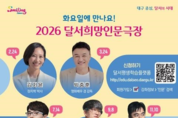 한국인터넷뉴스영남협회 김종설 기자 | 달서희망 인문극장 홍보 포스터. 이미지제공/대구 달서구 대구 달서구(구청장 이태훈)는 2월 24일(화) 오후 2시 달서아트센터 청룡홀에서 김지윤 정치학 박사의 강연을 시작으로 「2026 달서희망인문극장」을 본격 운영한다. 달서희망인문극장은 다양한 분야의 전문가를 초청해 구민과 함께 삶과 사회를 성찰하는 달서구 대표 인문학 강연 프로그램으로, 꾸준한 운영을 통해 지역을 대표하는 인문학 문화행사로 자리매김해 왔다. 올해 첫 강연에는 김지윤 정치학 박사가 「달러가 세계 경제를 지배하게 된 이유」를 주제로 강연을 진행한다. 세계 경제 질서 속에서 달러가 중심 통화로 자리 잡게 된 역사적 배경과 의미를 알기 쉽게 설명하고, 급변하는 국제 정세와 경제 흐름을 이해하는 데 도움을 줄 것으로 기대된다. 이후에도 다양한 분야의 명사들이 참여해 깊이 있는 인문학 이야기를 이어갈 예정이다. 3월 24일(화)에는 영화배우 겸 감독 박중훈이 「반성은 하지만 후회하지 않는 삶」을 주제로 강연하며, 7월 14일(화)에는 성우 남도형이 목소리와 감정을 통해 삶의 의미를 풀어낸다. 9월 8일(화)에는 세종대학교 지웅배 교수가 음악과 천문학을 접목한 인