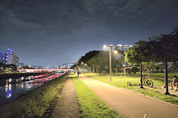 한국인터넷뉴스영남협회 김종설 기자 | 설치완료 장면. 사진제공/대구광역시 대구광역시는 신천 도심 구간에 추진 중인 ‘LED 가로등 설치 사업’의 2단계 구간을 11월 말 완료하면서, 전체 사업 중 75%를 마쳤다고 밝혔다. 이 사업은 신천을 더욱 안전하고 쾌적한 공간으로 만들기 위한 프로젝트로, 전체 3단계로 나눠 진행되고 있다. 하루 평균 1만 6,400명의 시민이 이용하는 신천은 대구의 대표적인 휴식과 운동 공간으로, 보행로와 자전거도로 분리 등 보행환경 개선 작업이 활발히 진행되고 있다. 지난해부터 시작된 ‘LED 가로등 설치 사업’은 신천 도심 구간의 노후 가로등을 LED로 교체하는 사업으로, 조도가 부족한 구간에는 추가 가로등을 설치해 30~40m 간격으로 평균 20Lx(룩스)의 밝기로 자전거도로와 산책로 전 구간을 고르게 밝힐 계획이다. 특히, 지난 3월 신천 푸른숲 조성이 완료된 이후 야간에도 신천을 찾는 시민들이 늘어나면서, 사업 효과성이 증대되고 있다. 사업은 총 3단계로 진행된다. 지난해 1단계(좌안 상동교~수성교, 우안 수성교~동신교)를 완료한 후, 올해는 2단계를 진행했다. 2단계 구간인 우안(용두교~침산교)과 좌안(성북교~침산교) 구간
